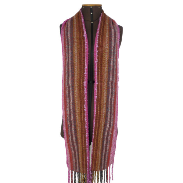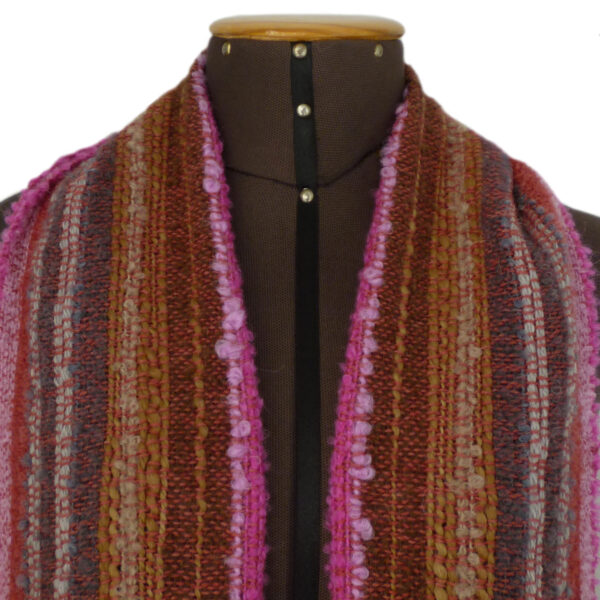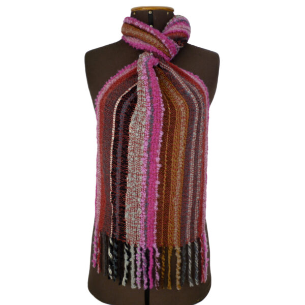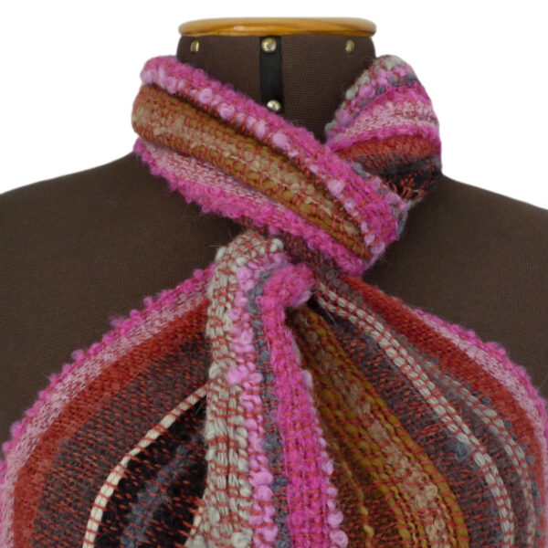 Featuring a range of beautiful earth tones and pinks, our Itala scarf is perfect for enhancing your inner romantic side. Delight in its exquisite yarns and discover how comfortable and adaptable this piece is.