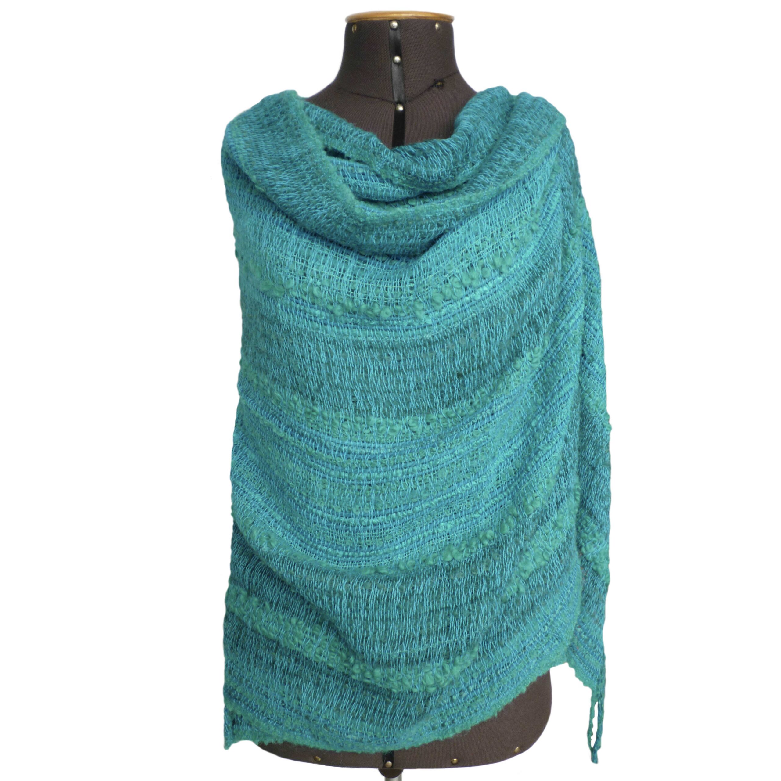 Our Belgica shawl is made from 100% baby alpaca and is crafted in a refreshing shade of turquoise. The fringe detailing and finishing are handmade.