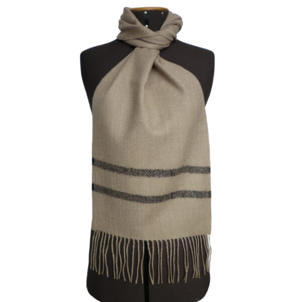 With a classic and elegant style, our Cajamarca scarf looks radiant thanks to the stripe details that contrast with its natural tone.