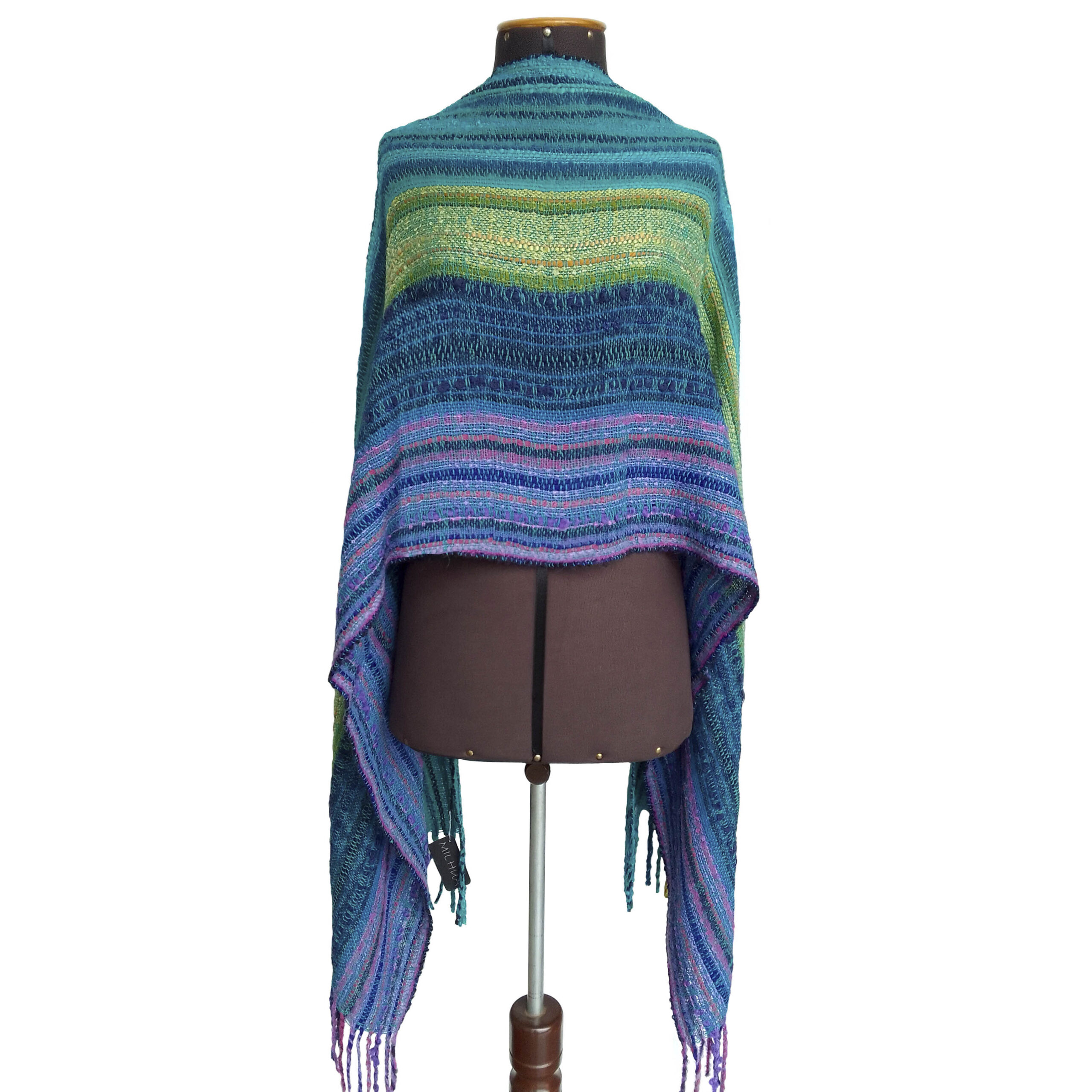 Our Caridad scarf is beautiful and colorful. It’s handcrafted on artisan looms with baby alpaca fiber and hand-stitched fringe details.