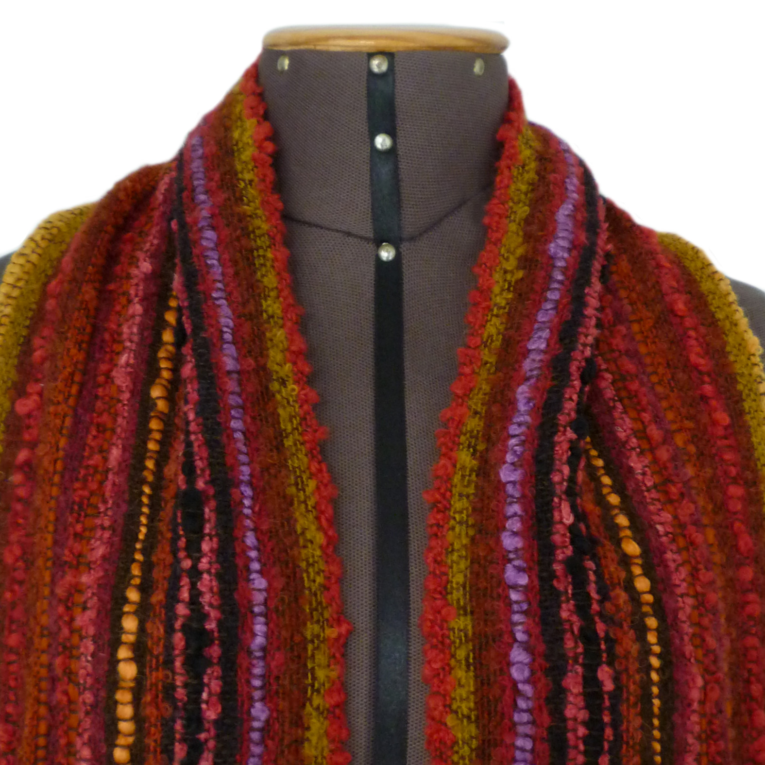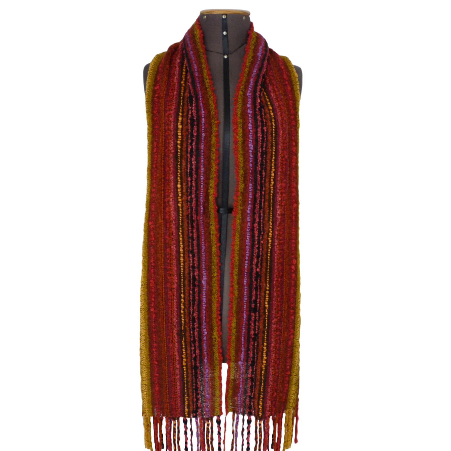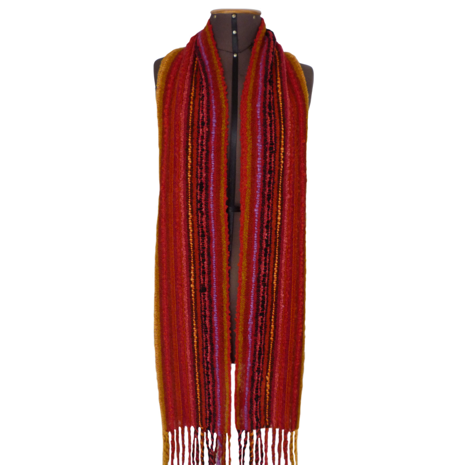 Indulge in our colorful and beautiful Chiclayo shawl. Don’t hesitate to enjoy the richness of its bouclé yarns and delicate hand-stitched fringe. This piece is crafted from 100% baby alpaca.
