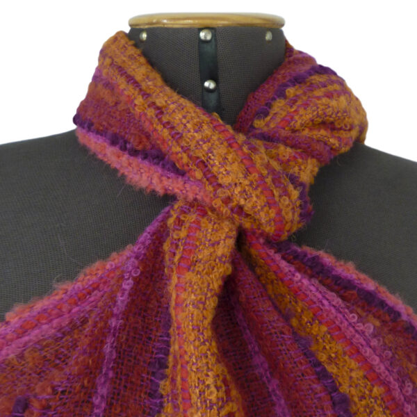 Dynamism and warmth emerge with our Claudia scarf. Don’t hesitate and enjoy the richness of its bouclé yarns and delicate hand-woven fringes. This piece is crafted from 100% baby alpaca.