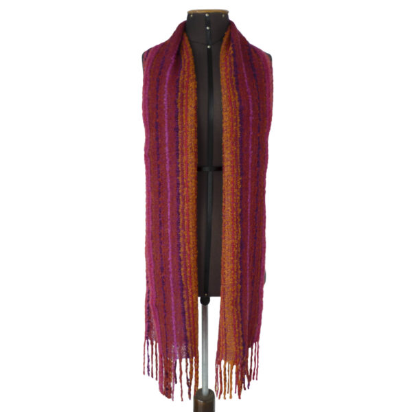 [:es]El dinamismo y la calidez se abren paso con nuestra chalina Claudia. No lo dudes y disfruta de la riqueza de sus hilados en bouclé y de sus delicados flecos hechos a mano. Esta pieza esta trabajada en 100% baby alpaca.[:en]Dynamism and warmth emerge with our Claudia scarf. Don't hesitate and enjoy the richness of its bouclé yarns and delicate hand-woven fringes. This piece is crafted from 100% baby alpaca.[:]