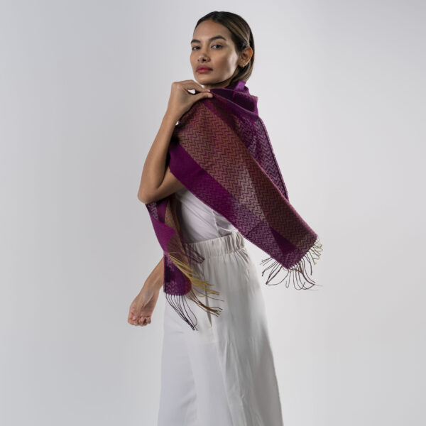 Accompanied by a range of harmonious colors, our Cocona shawl is shone with a soft fabric in luxurious baby alpaca. It is the ideal complement to make your outfit stand out and be the center of attention.