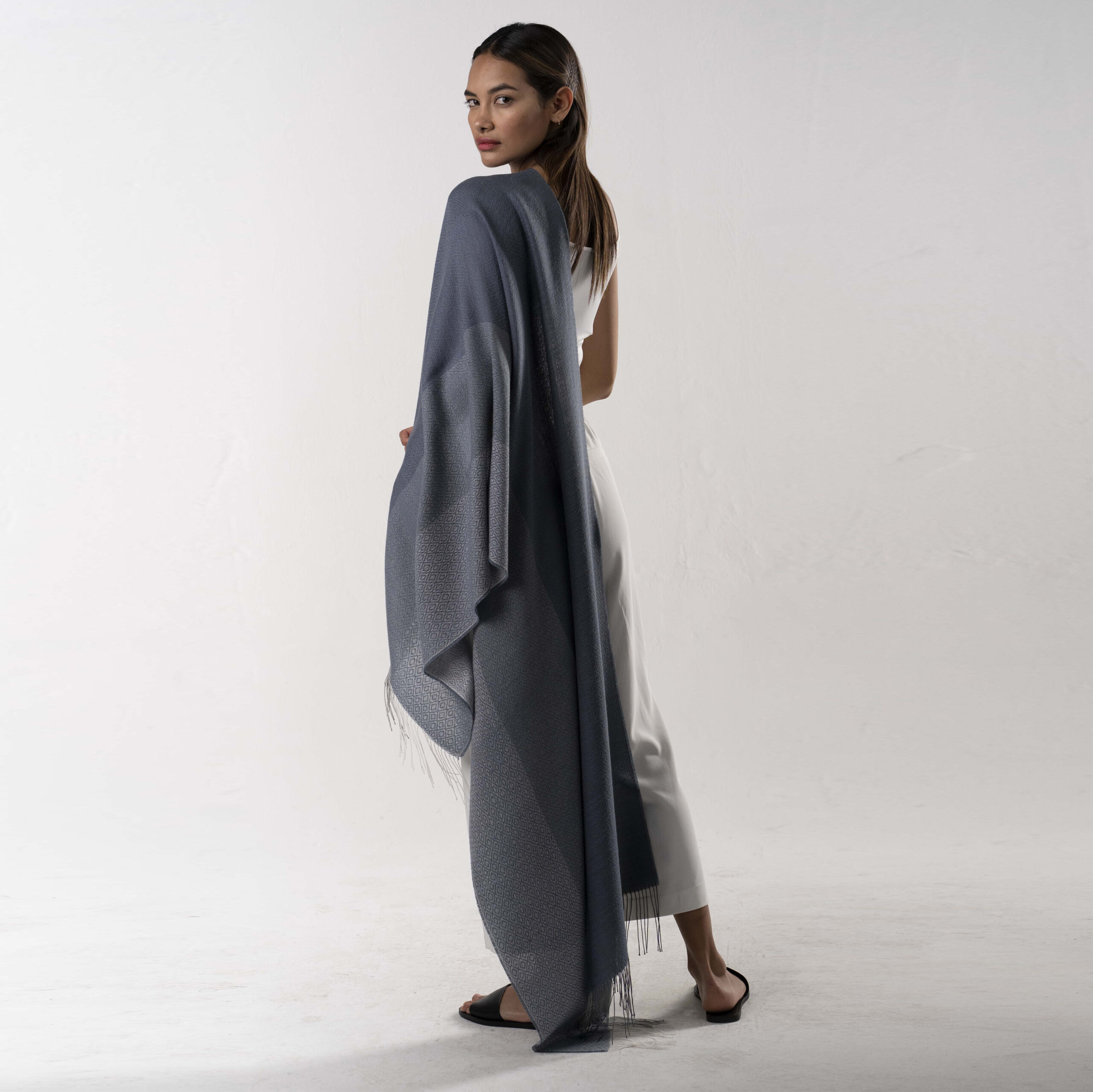 Our sophisticated Silver shawl comes in a range of grays and features delicate patterns of high quality and excellent finish.