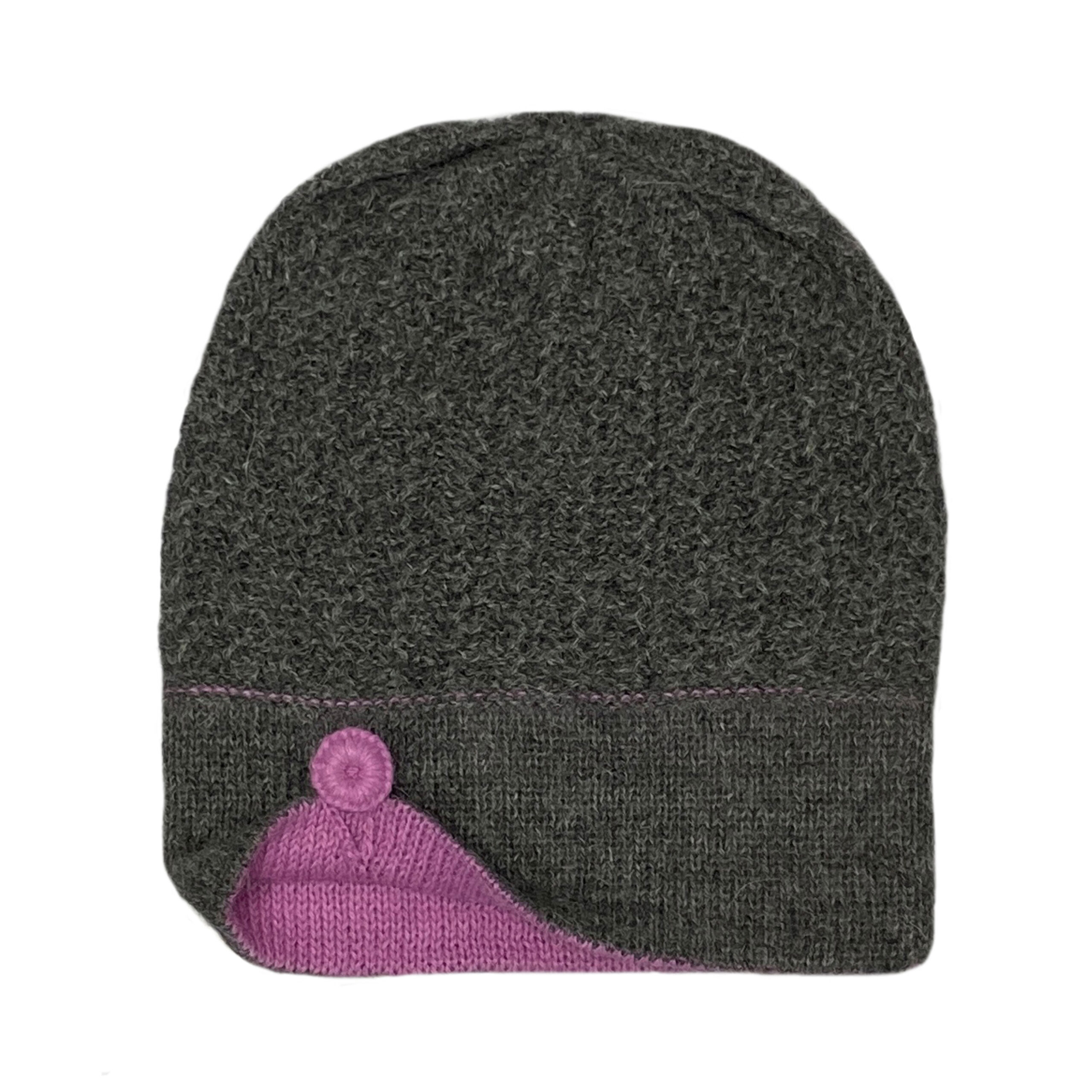 Nuestra gorra Any DT esta trabajada en 100% baby alpaca y destaca por sus delicados botones en contraste al tejido base. Acogedora y cómoda, es una pieza que no puede faltar en tu armario.