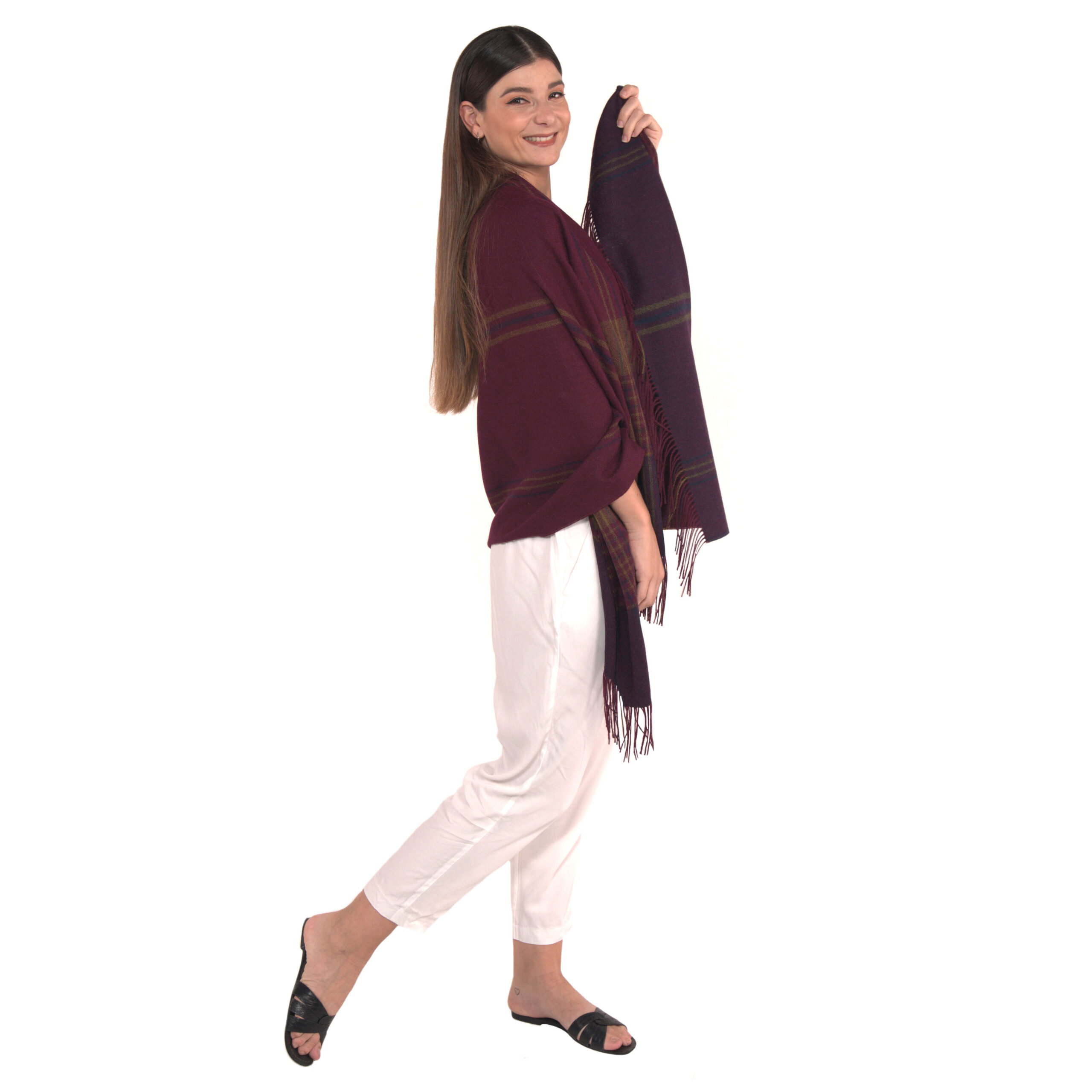 De excelente caída y de fino acabado, nuestro chal Pisco se destaca por su tejido y calidad. Disfruta de su delicada gama magenta y luce excepcional en toda ocasión.