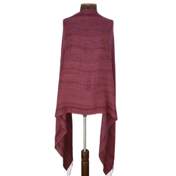 Poseedor de una delicada gama de tonos variados, Coral se consagra como una prenda magnífica para tu clóset. Elaborada en telares industriales con fibra en baby alpaca y mezcla con seda, es muy suave al tacto. Los flecos y los acabados de la prenda son elaborados a mano.