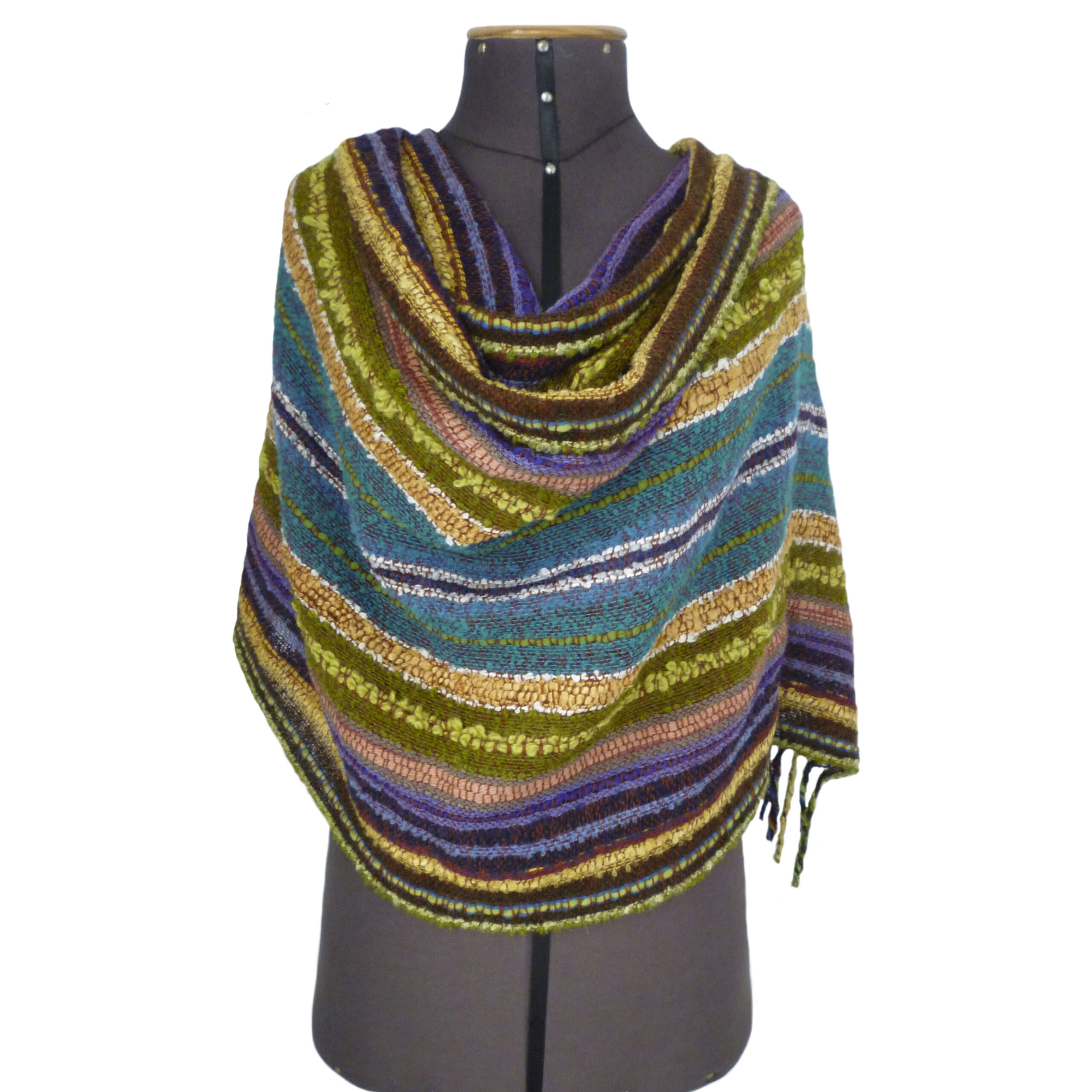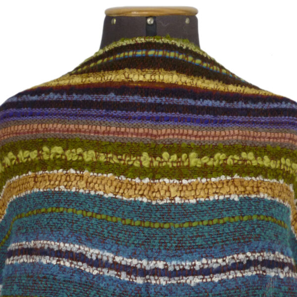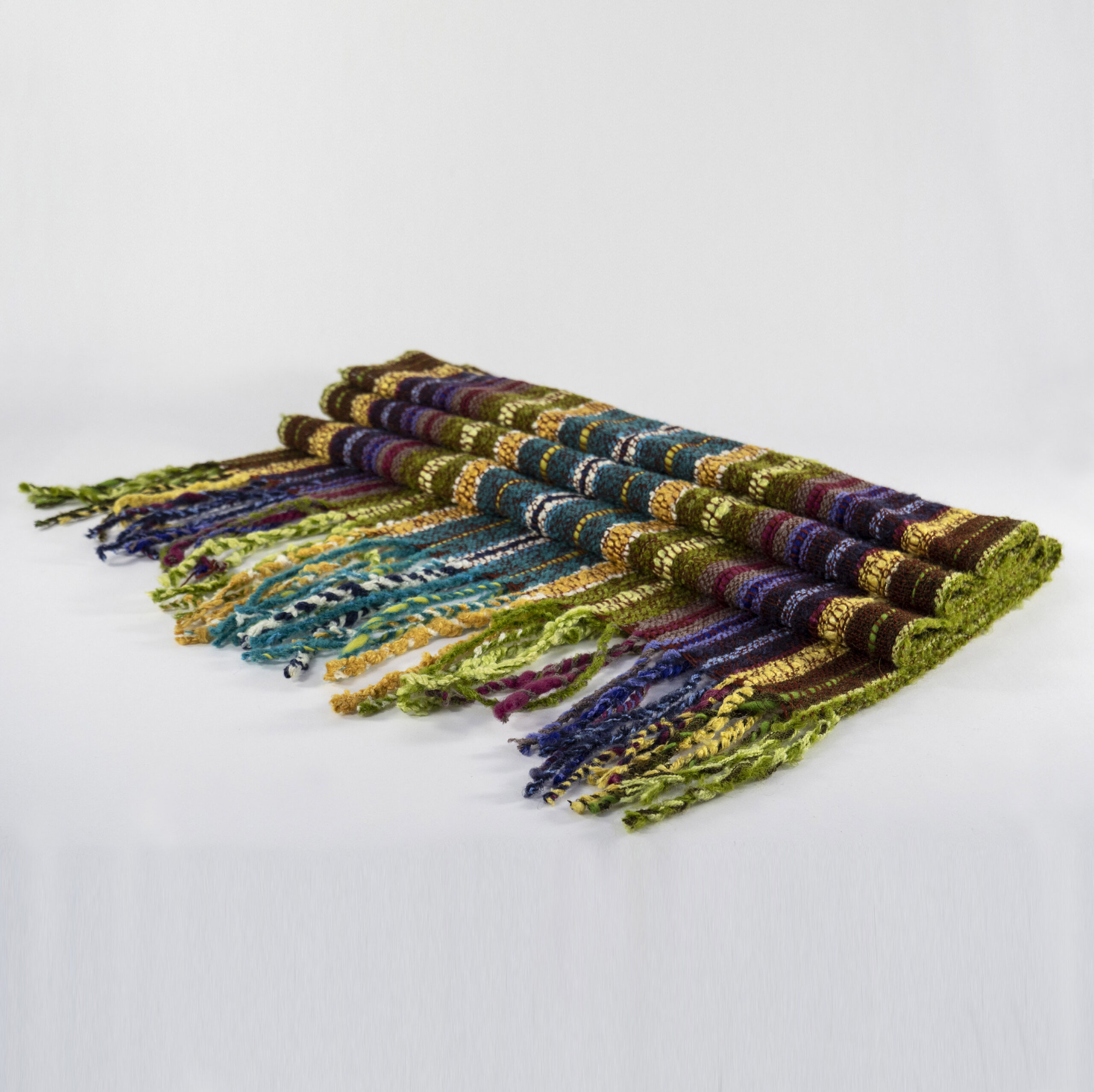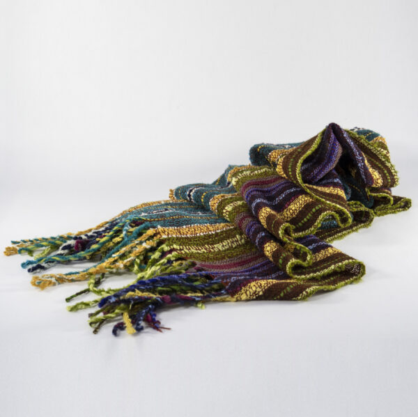 Nuestra bufanda Gladys es suave y colorida. Esta elaborada en telares artesanales con fibra en baby alpaca y detalle de flecos hechos a mano.