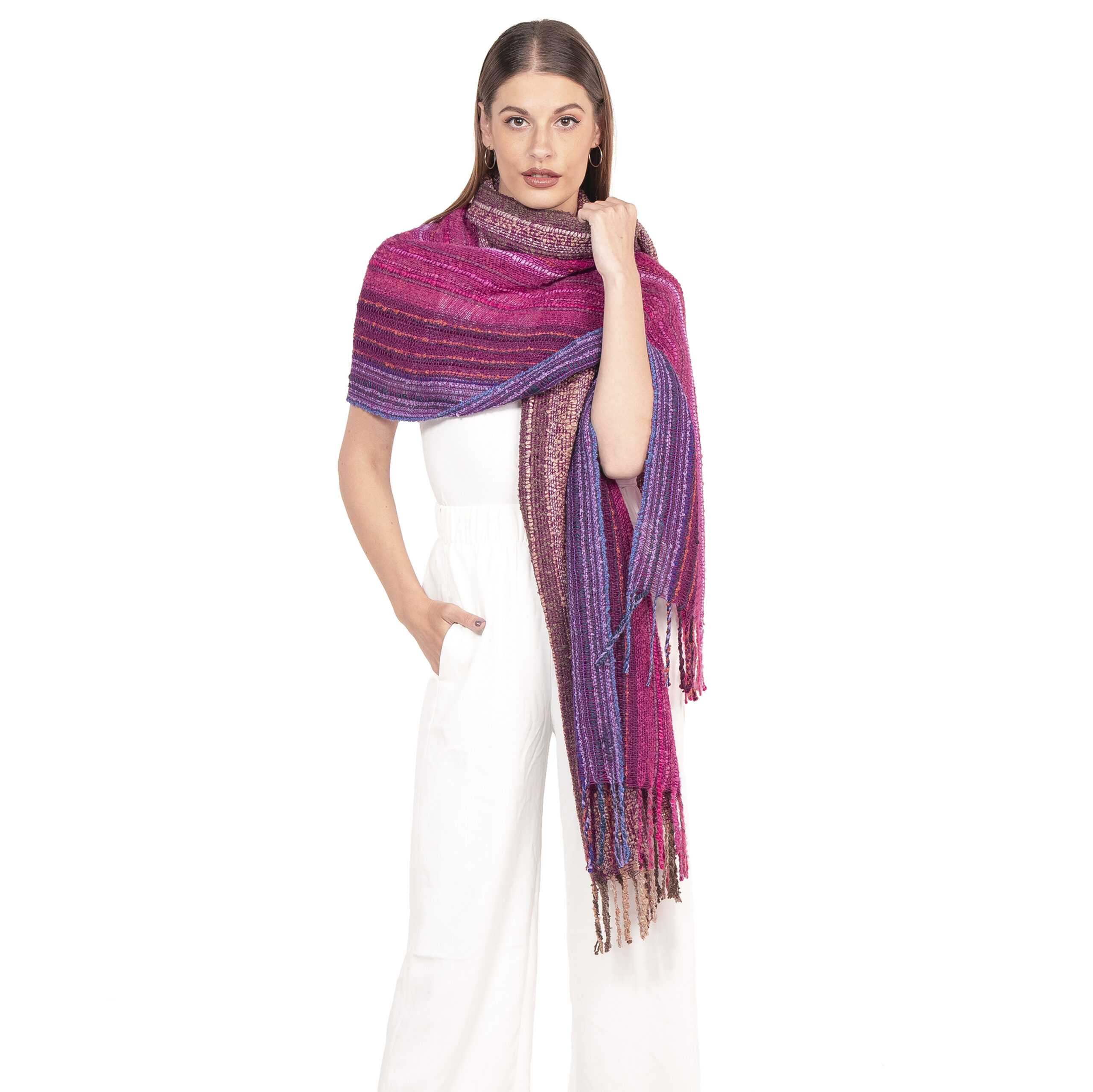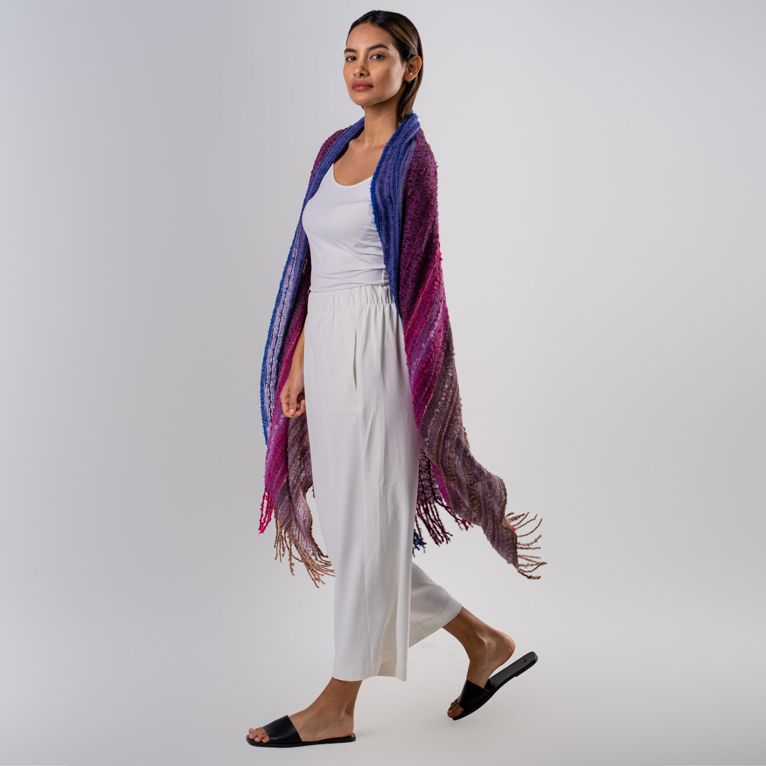 Nuestro chal Nataly está elaborado 100% con baby alpaca y es perfecto para cualquier ocasión gracias a su hermosa y delicada gama de grises.